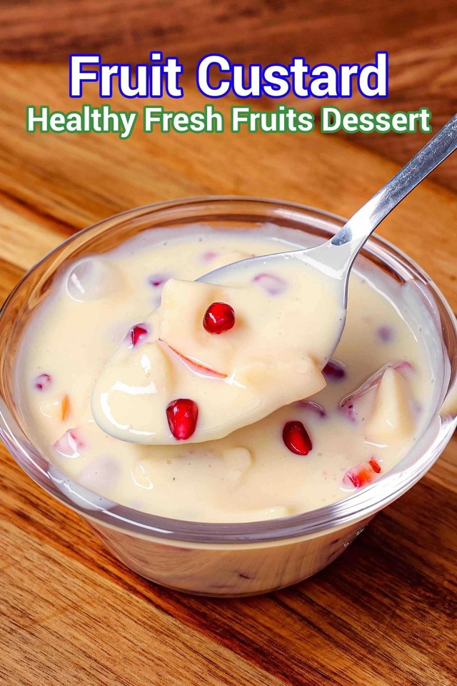 A creamy, chilled dessert made with smooth vanilla custard and a colourful mix of fresh seasonal fruits. Lightly sweet, fruity, and comforting — this is a perfect end to any meal or a refreshing treat on a warm day!